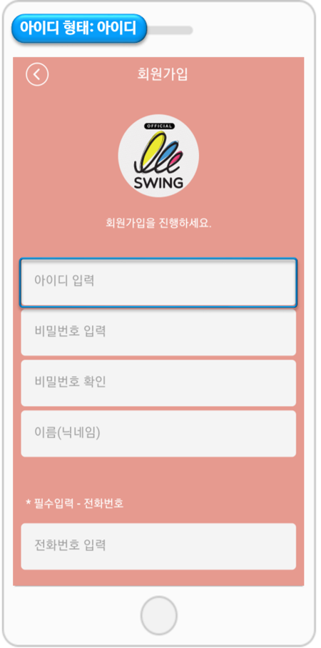 3) 아이디 형태: 전화번호
