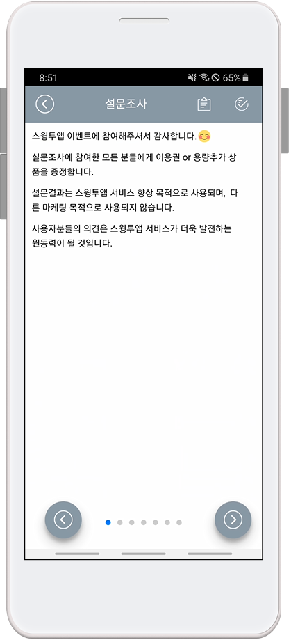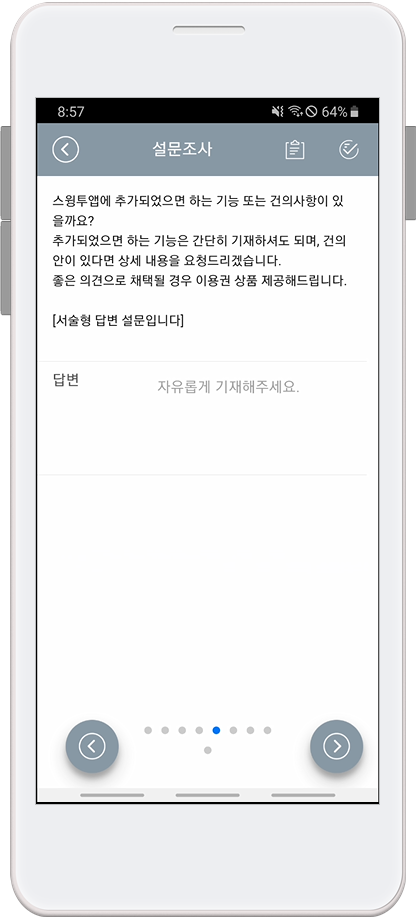 앱을 실행 한뒤 설문조사에 참여할 수 있습니다.