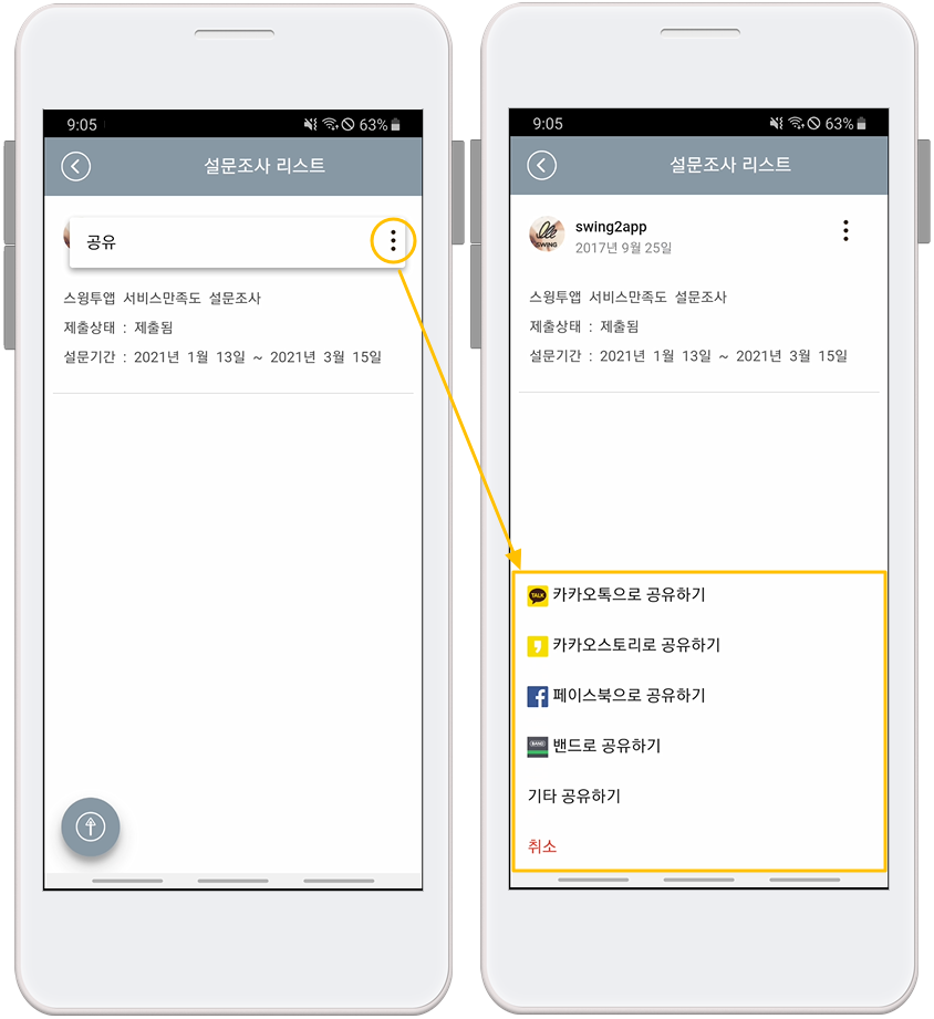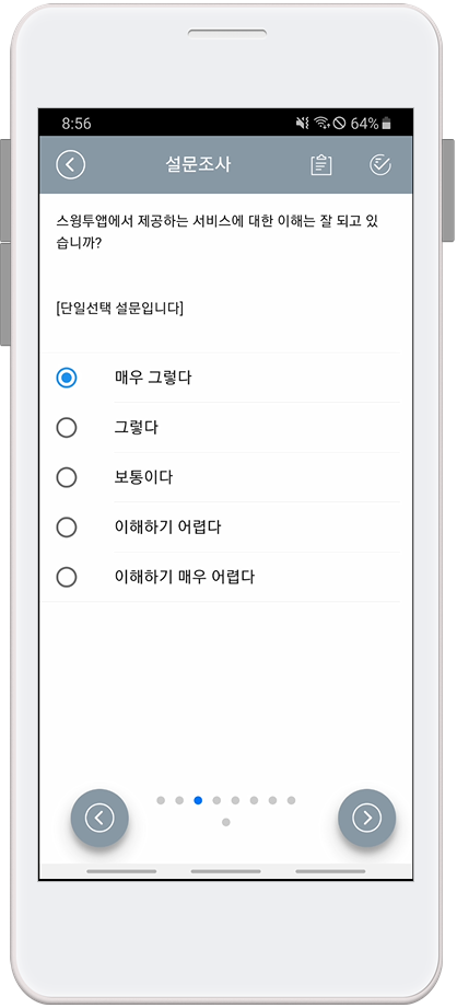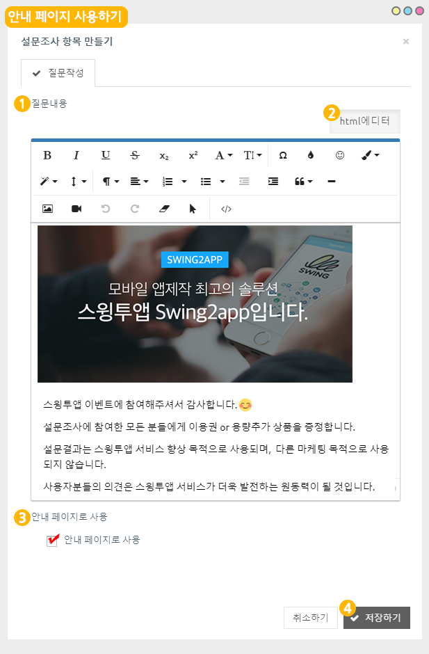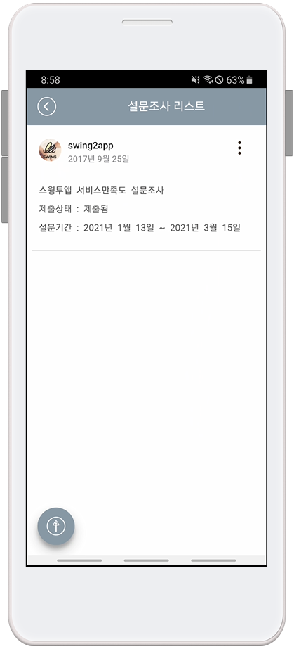 설문조사 관리 기능은 스윙투앱 사용자라면 누구나 다 사용가능하시기 때문에 매뉴얼 대로 차근차근 따라하신다면 금방 앱 전문가가 되실 수 있을 거에요 ^^
