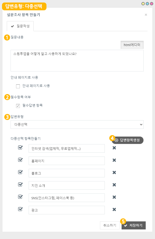 (3)답변 유형 선택 : 다중선택