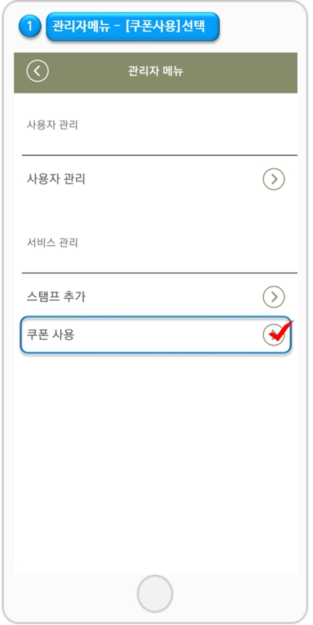 앱에서도 직접 관리자가 사용자의 쿠폰 번호를 확인하여 사용처리를 할 수 있습니다.