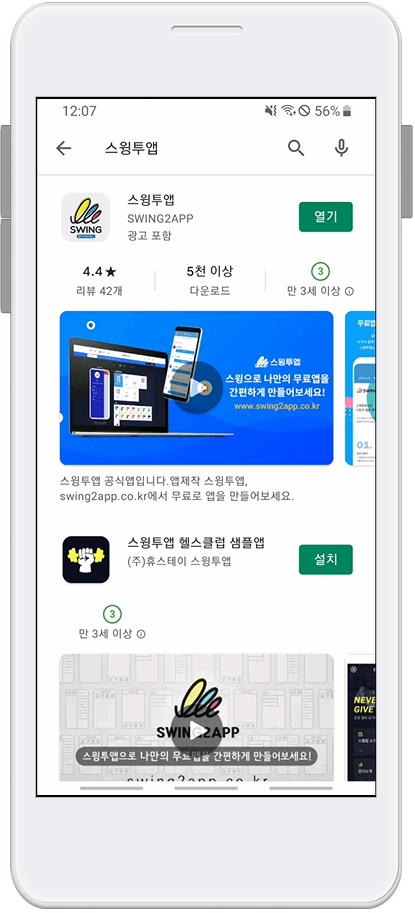 *스윙투앱 공식앱이 이미 설치가 되어 있다면 최신버전으로 업데이트 받아주세요.