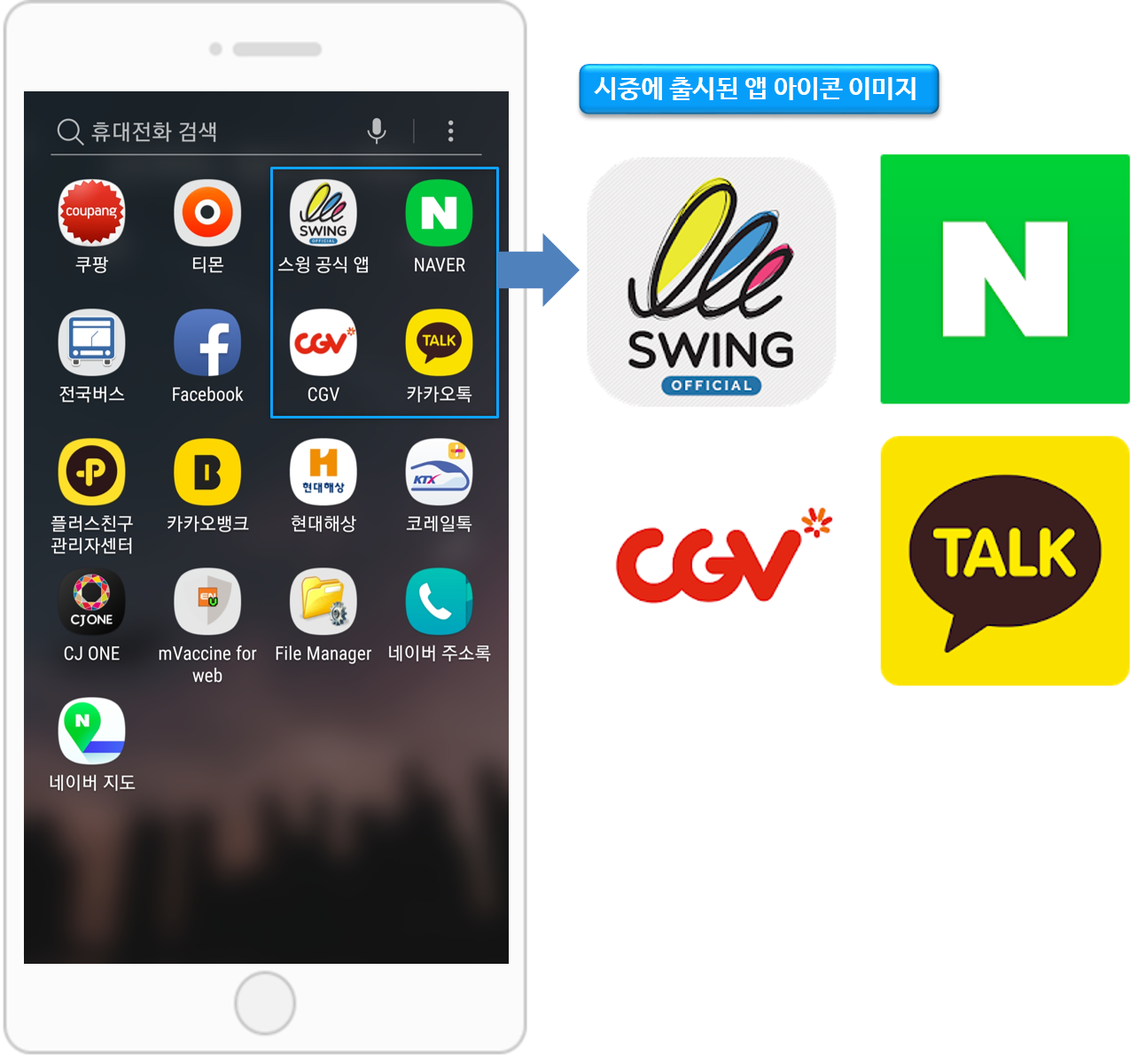 앱을 대표하는 이미지이며, 스마트폰 바탕화면에 표시되는 대표 아이콘 이미지를 말합니다.