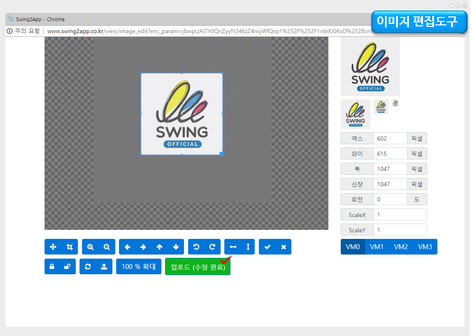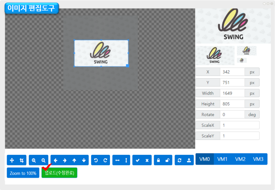 스윙에서 제공하는 이미지편집도구로 간편하게 원하는 사이즈대로 이미지를 수정하여 업로드할 수 있습니다.