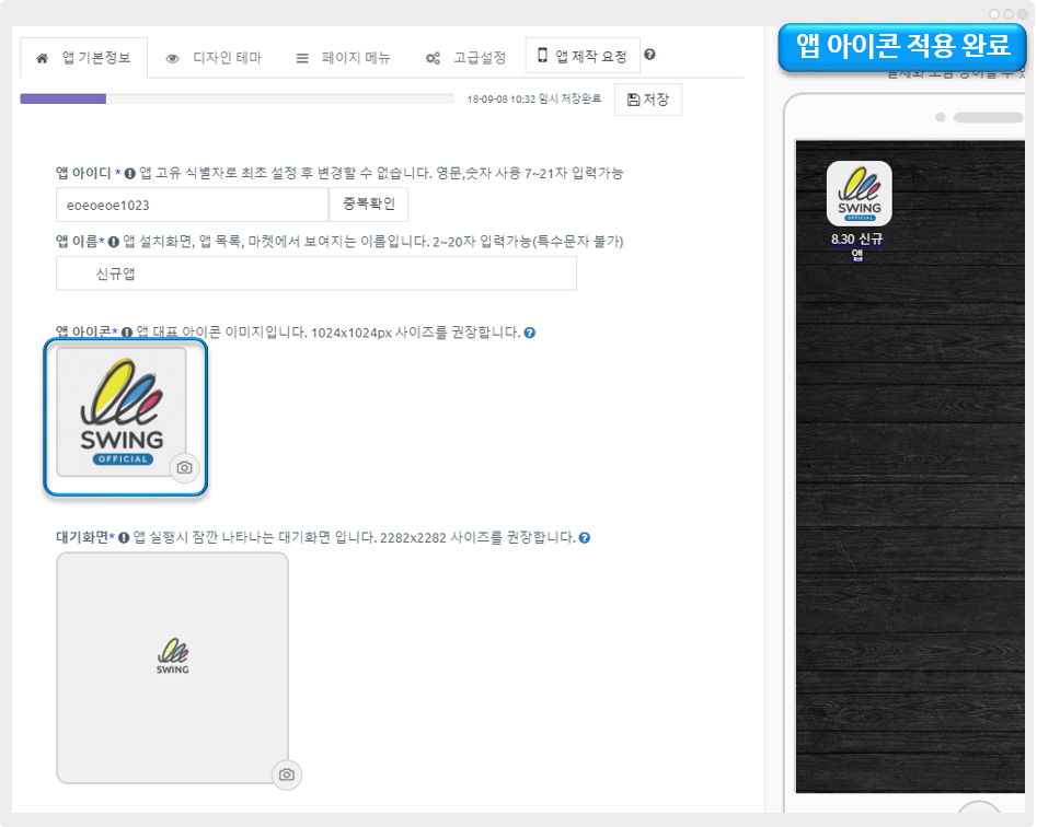 앱제작시 앱 기본정보 항목에 앱 아이콘 이미지, 앱 대기화면 이미지를 넣게 되는데요.
