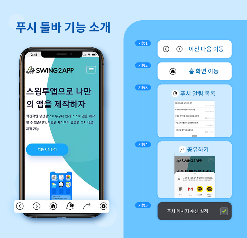-웹뷰와 달리 스윙투앱에서 제공하는 푸시 발송 기능을 이용할 수 있어요.