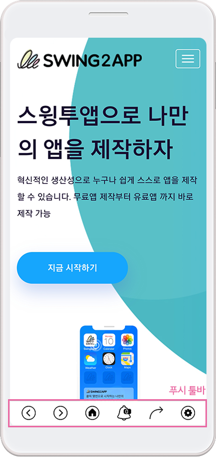 푸시전용앱 제작시 이미지에서 보는 것처럼, 앱 화면 하단에 푸시 툴바가 생성이 되요.
