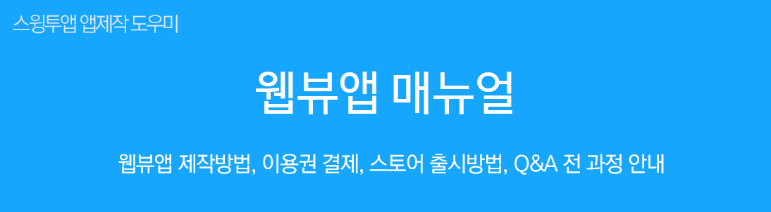 웹뷰 앱제작을 생각하고 있다면 웹뷰앱 제작 매뉴얼을 꼭 확인해주세요.