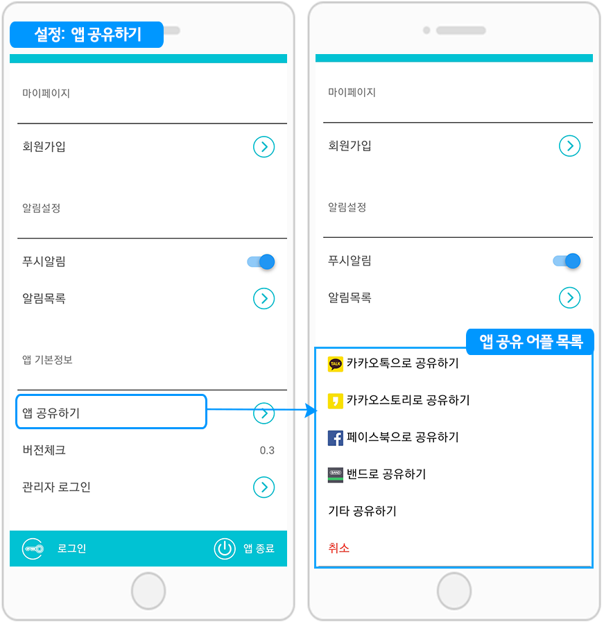 공유하기로 앱 다운받기 상세 방법은 아래 매뉴얼을 참고해주세요!