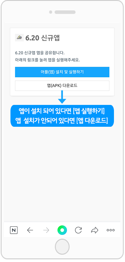 앱 실행 및 앱 설치 방법은 위에서 설명드린 카카오톡 공유 방법과 동일하게 사용자의 앱 설치 유무에 따라 앱 실행 및 앱 다운로드를 해주시면 됩니다.