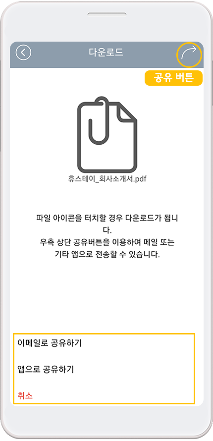 앱에서 파일첨부 메뉴를 선택하면 다운로드 페이지로 이동하구요.