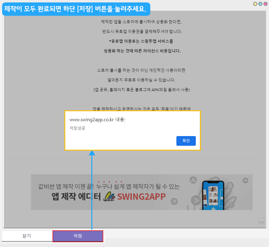 5. 제작 완료시 저장 버튼을 눌러주세요.