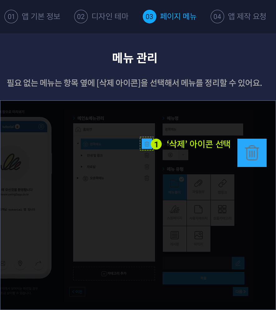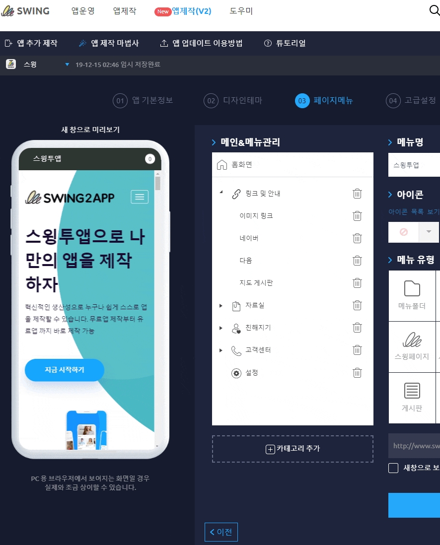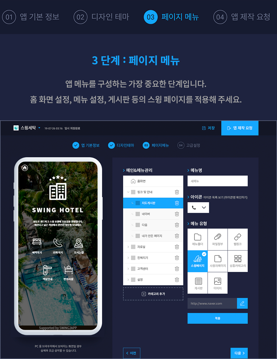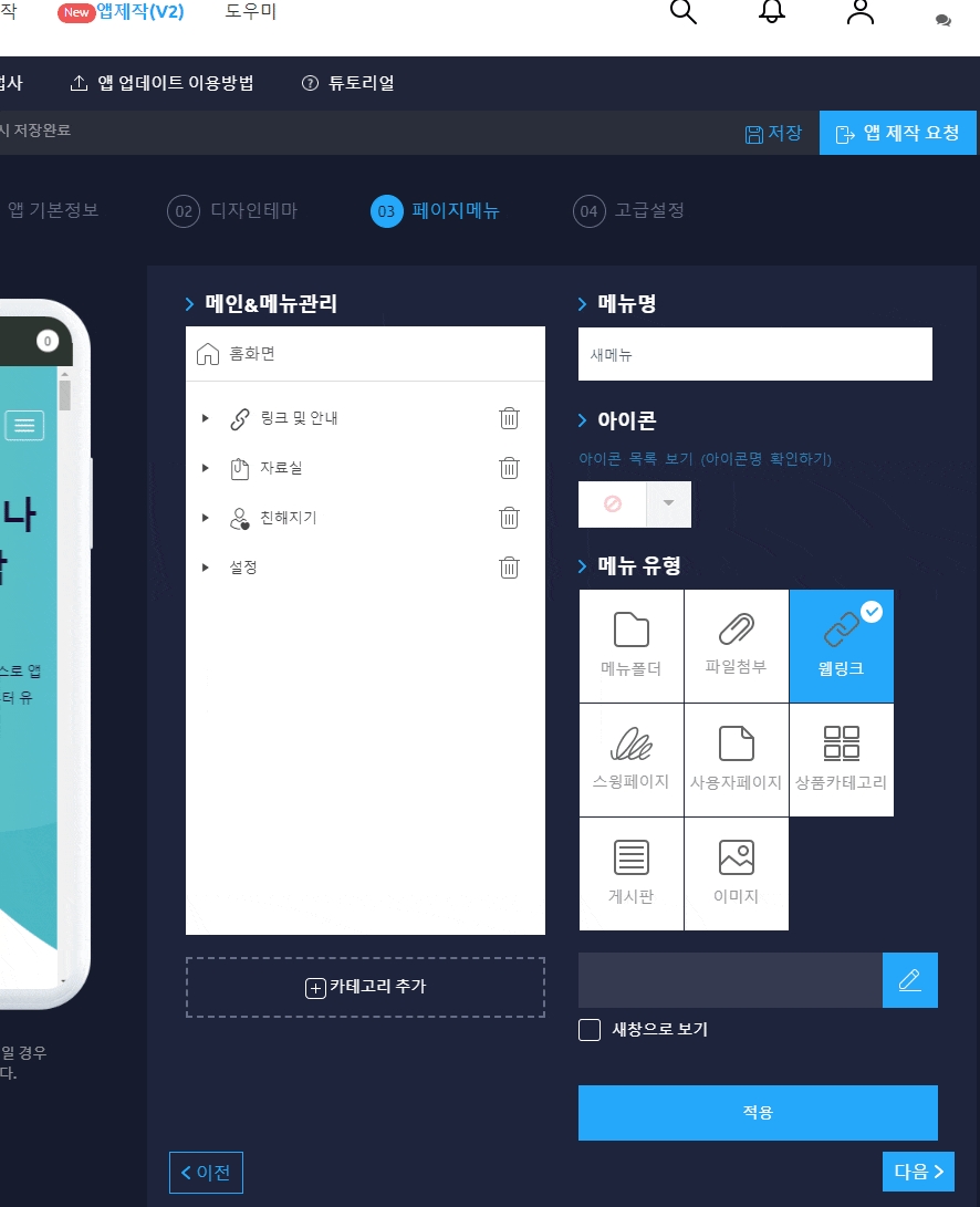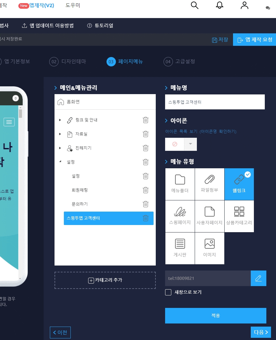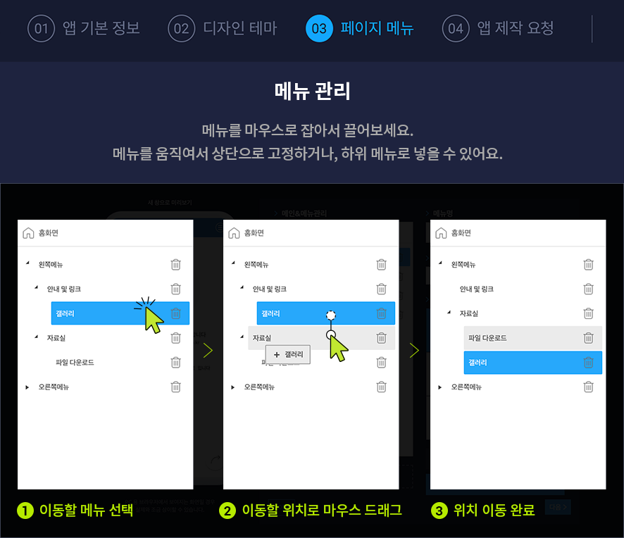 앱제작 페이지 – 페이지메뉴 단계