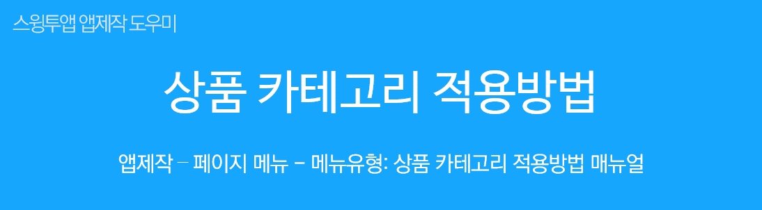 *카테고리는 스윙샵 상품등록시 미리 만들어주셔야 합니다. 상품 카테고리가 없을 경우 적용이 불가합니다.