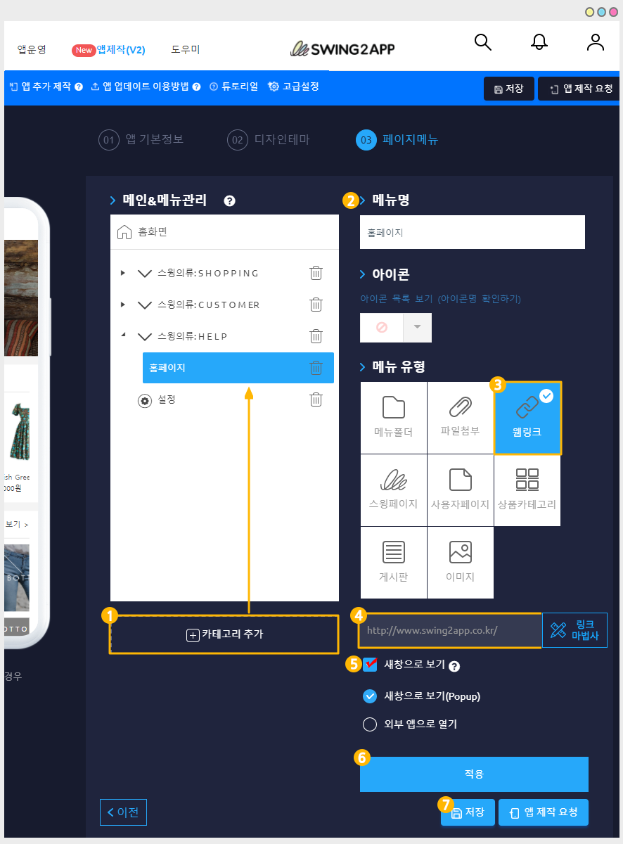 앱제작 페이지 – 3단계 페이지 메뉴로 이동합니다.