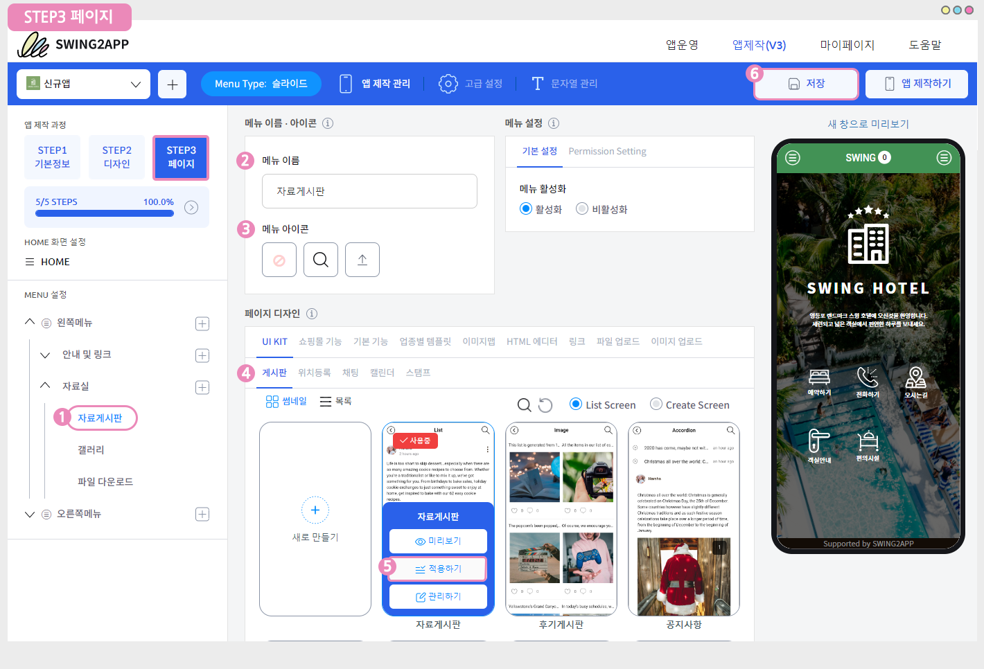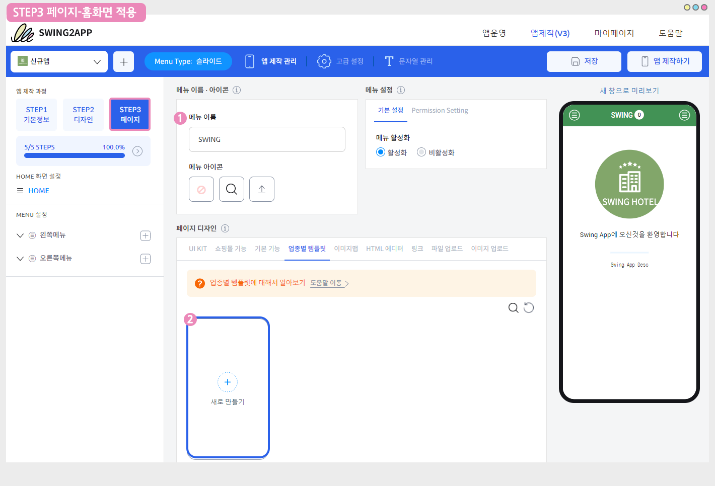 앱제작 V3 제작 매뉴얼 중 STEP3 페이지 단계 제작 방법을 알려드립니다.