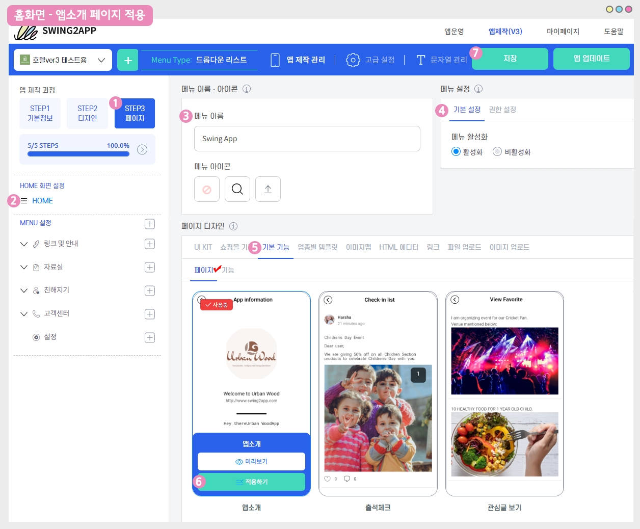 해당 제작도구에서 이미지페이지를 만든 뒤, 앱에서 적용할 수 있습니다.