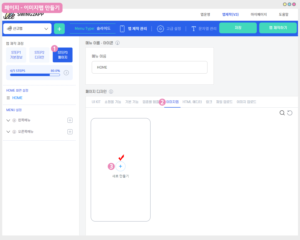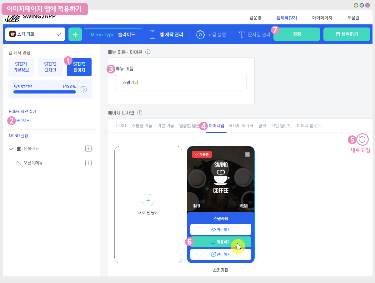 그럼 다시 앱제작 페이지로 돌아가서 앱에 해당 이미지페이지를 적용해볼게요!!