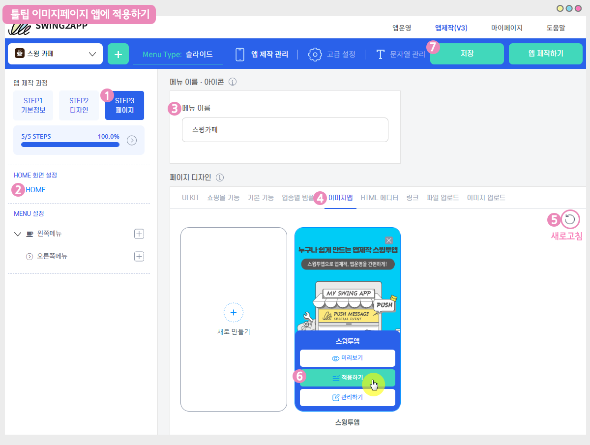 *스윙투앱 공식앱 – 이미지 페이지 적용화면