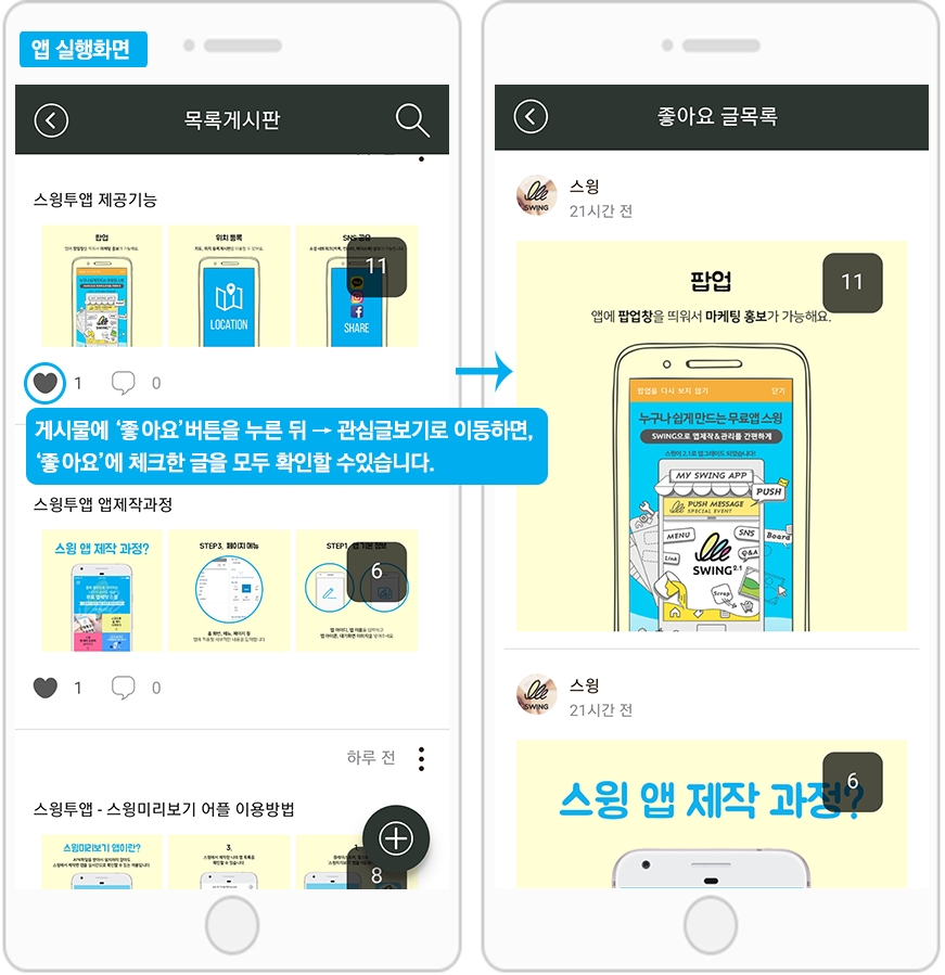 2) 게시물 ‘좋아요’ 체크는 앱에서 회원가입 후 로그인 된 사용자만 이용가능합니다.