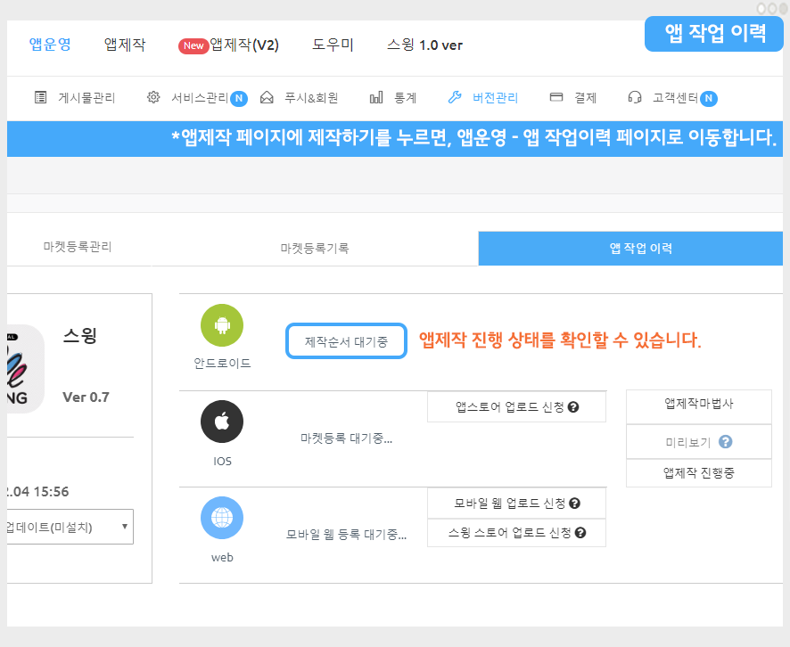 2.앱제작 이력 확인하기