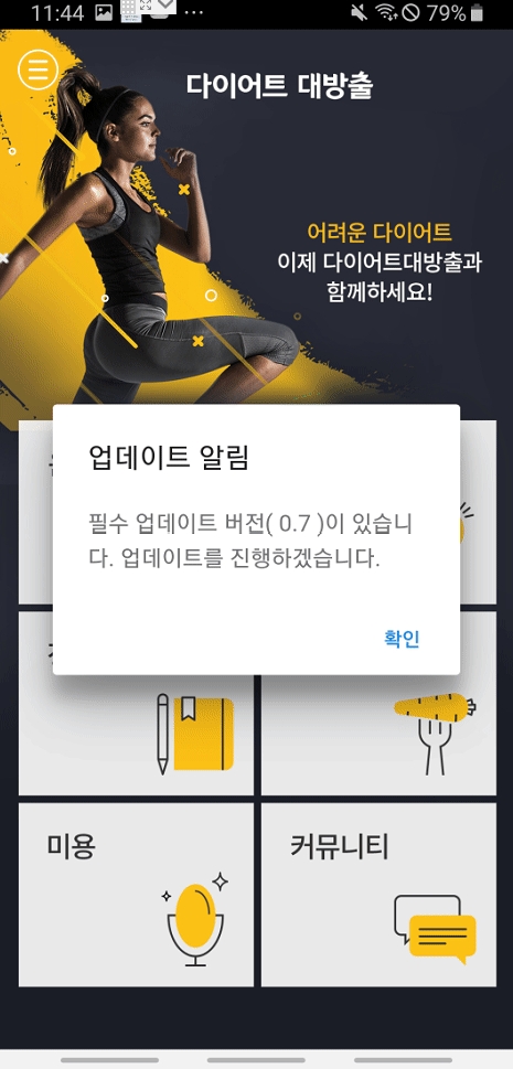 ‘확인’ 선택시 바로 앱 내 업데이트가 진행되요.