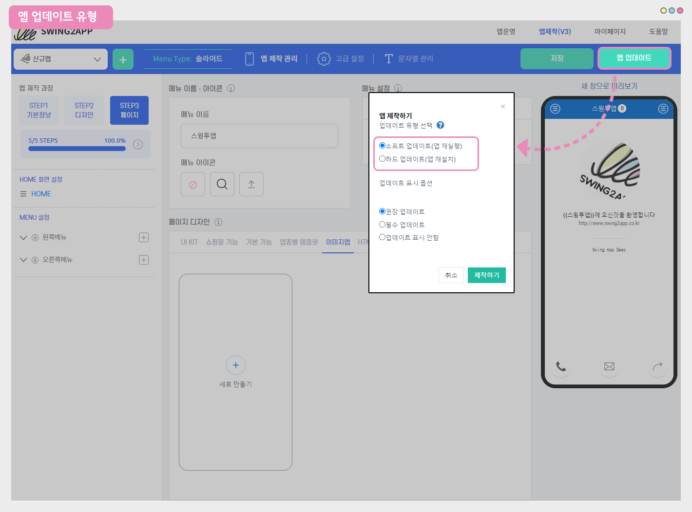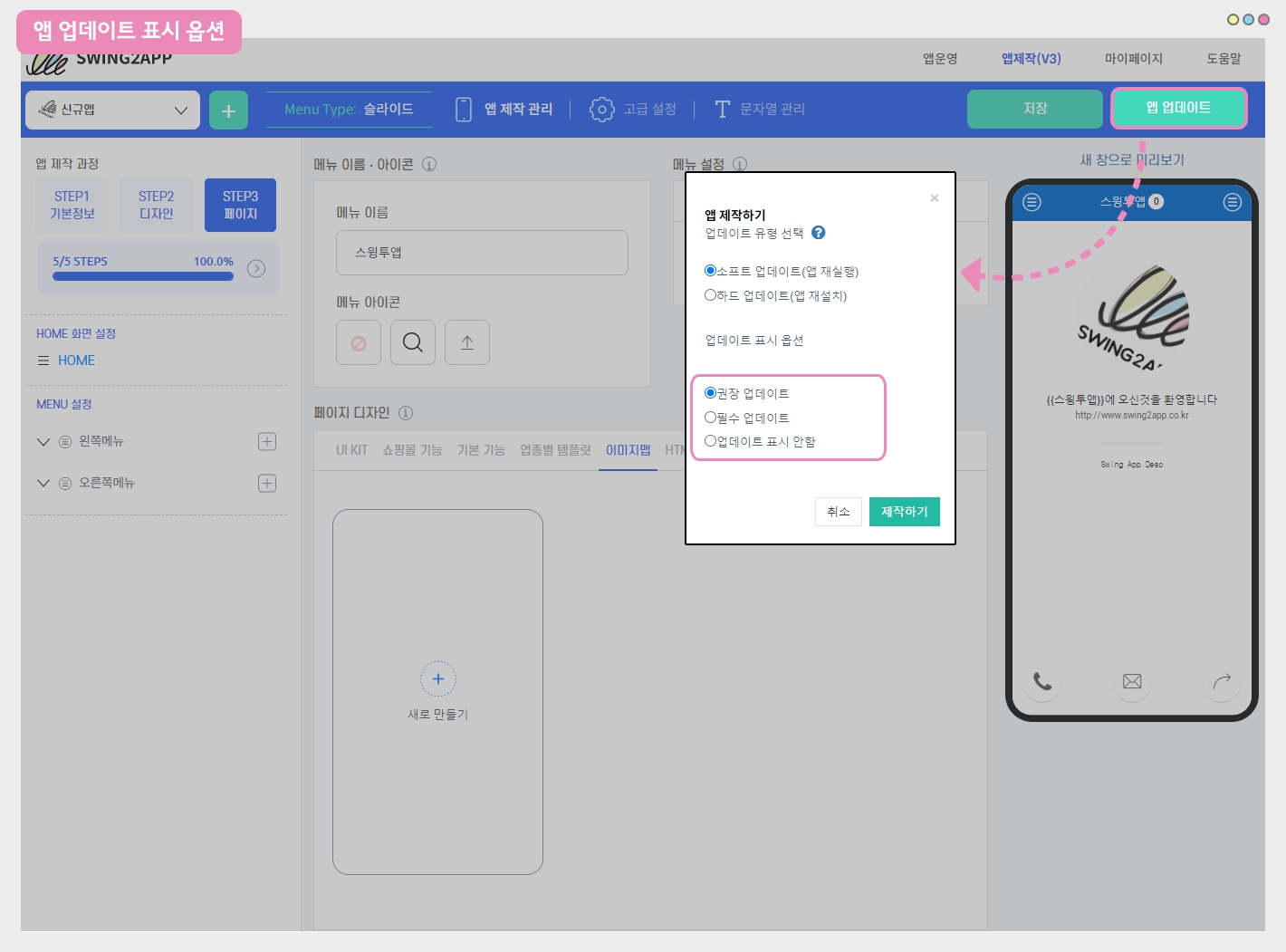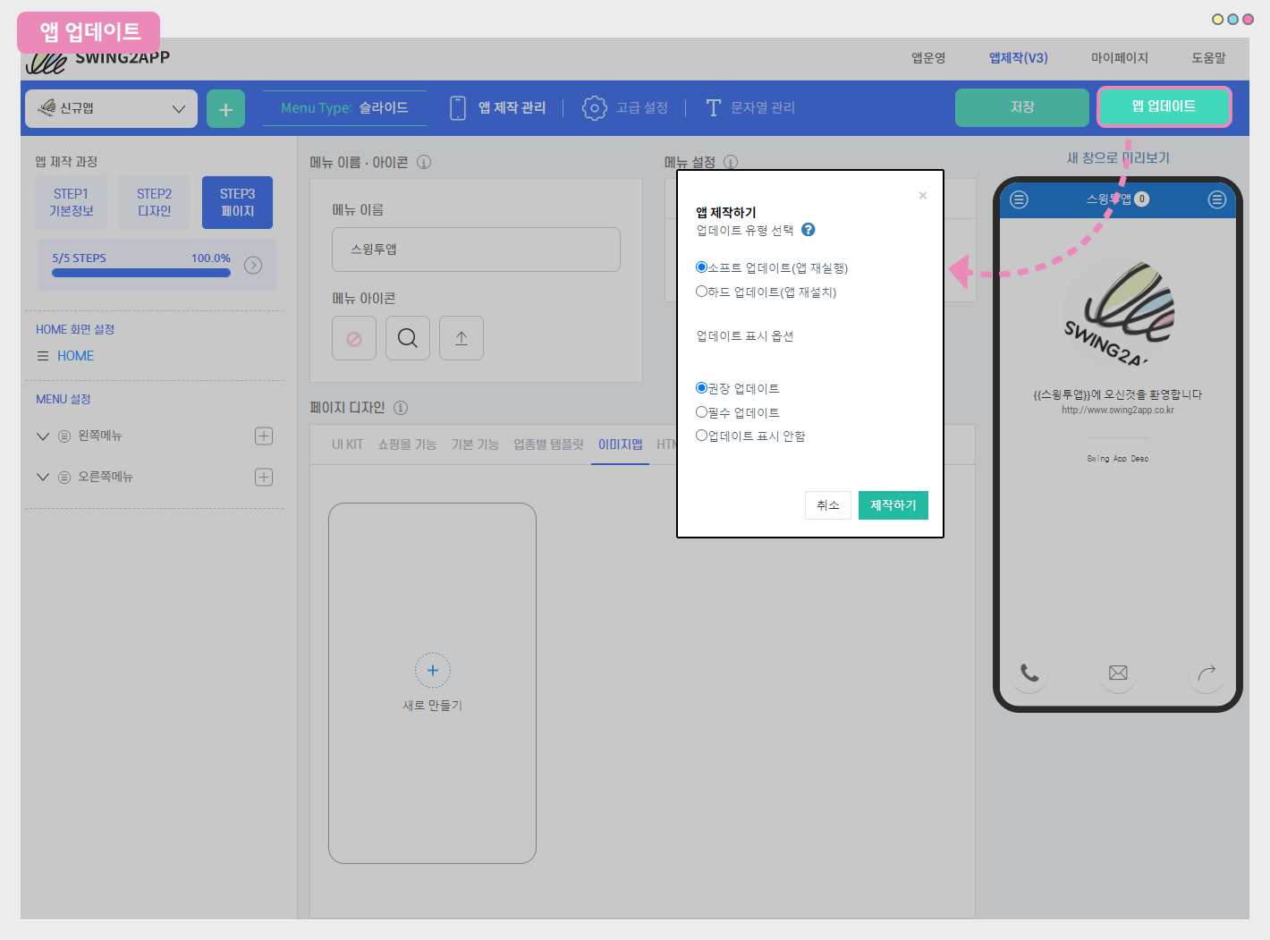 ★ 스윙투앱에서는 제작한 앱을 수시로 수정하고 업데이트할 수 있답니다!!