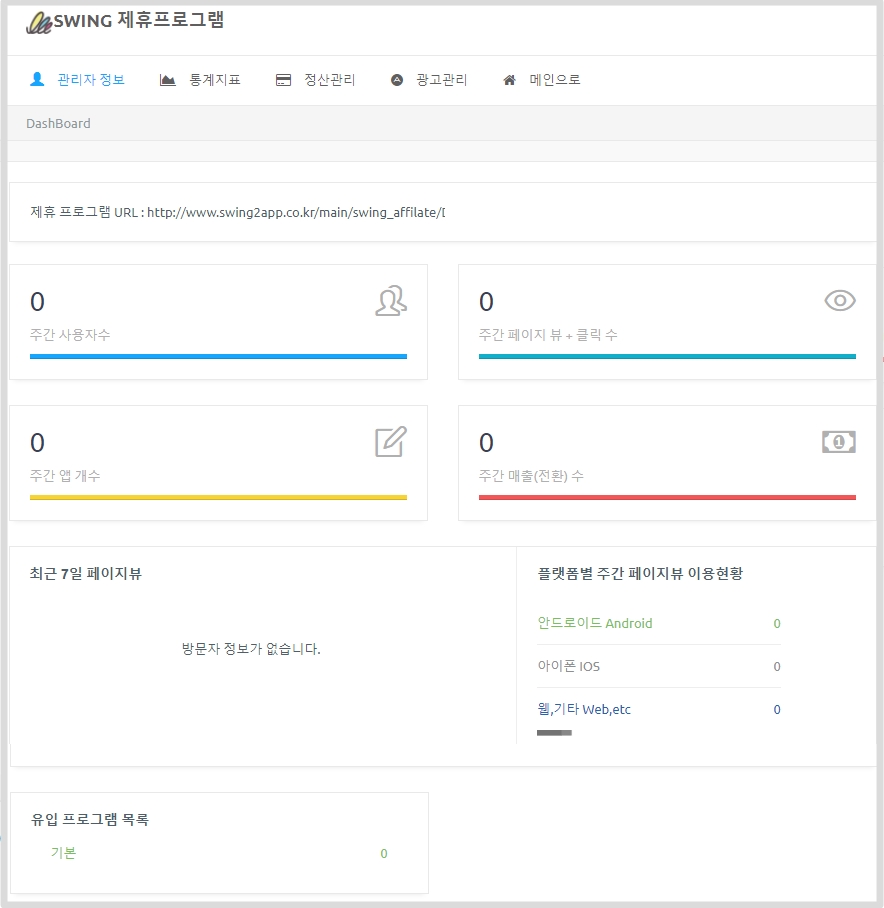 제휴 프로그램 관리자 페이지 입니다.