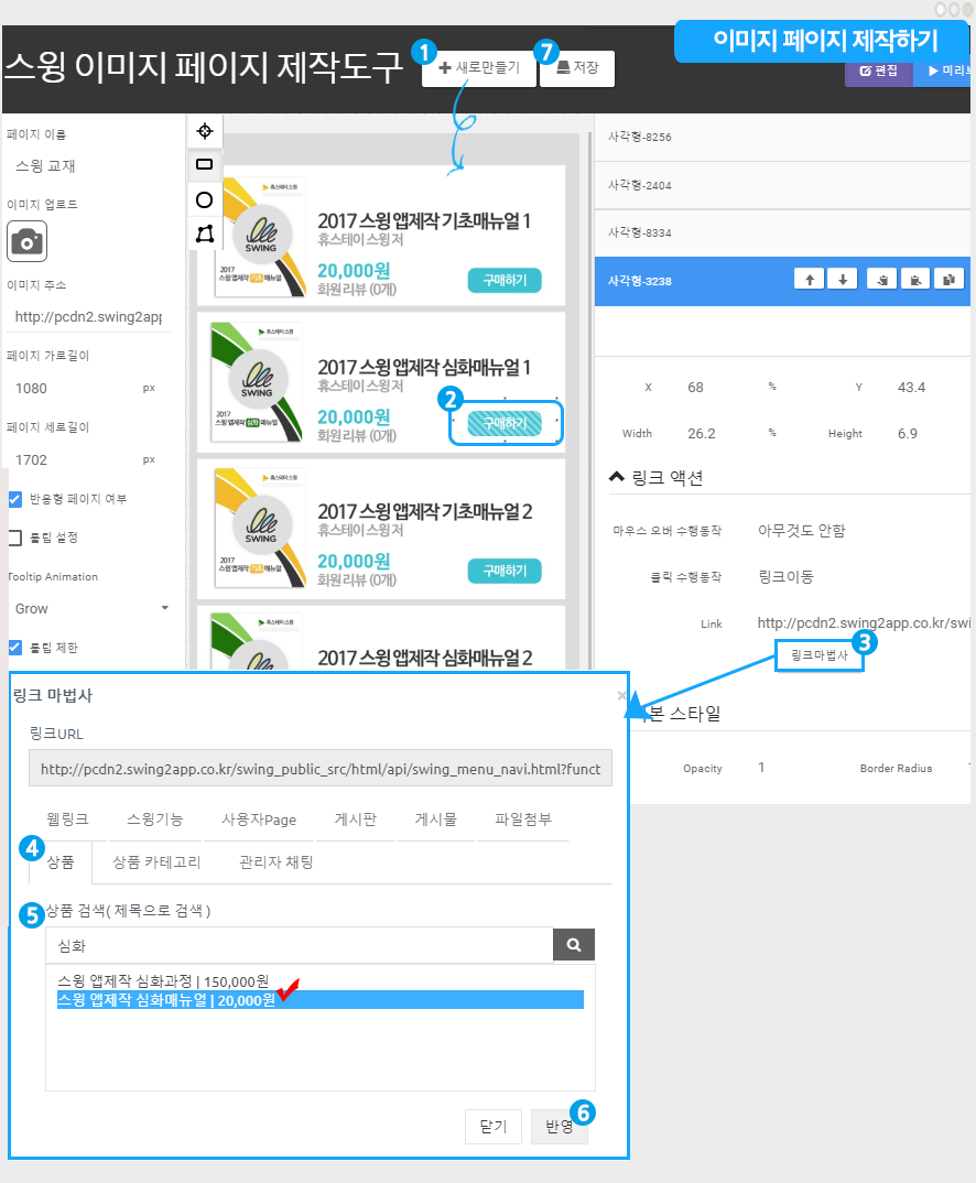 이미지 페이지-스윙샵 상품을 넣어서 제작하는 방법