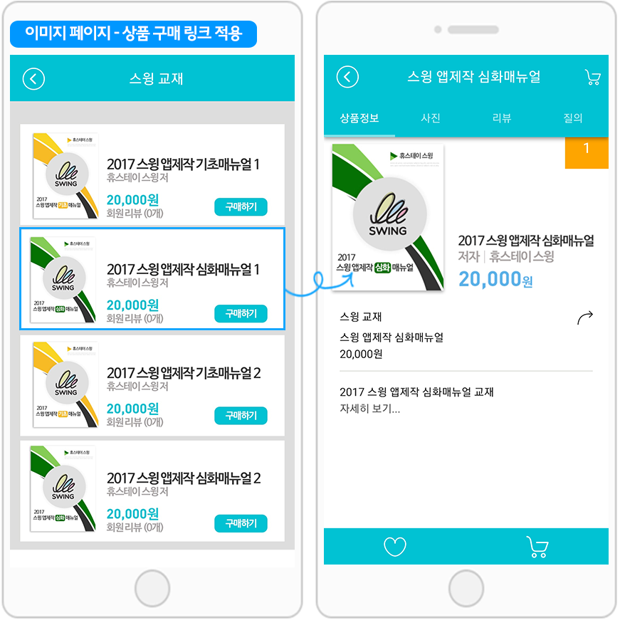 스윙샵을 이용하시는 분들은 위의 매뉴얼을 참고해주셔서 앱 화면을 구성해주세요.