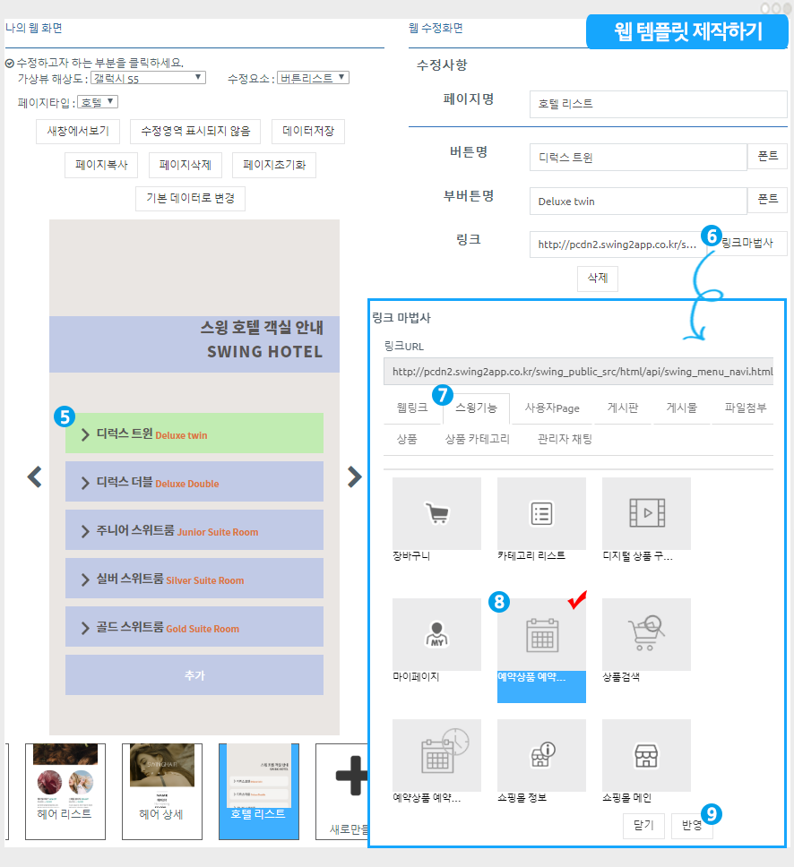 웹 템플릿 페이지-스윙샵 상품을 넣어서 제작하는 방법