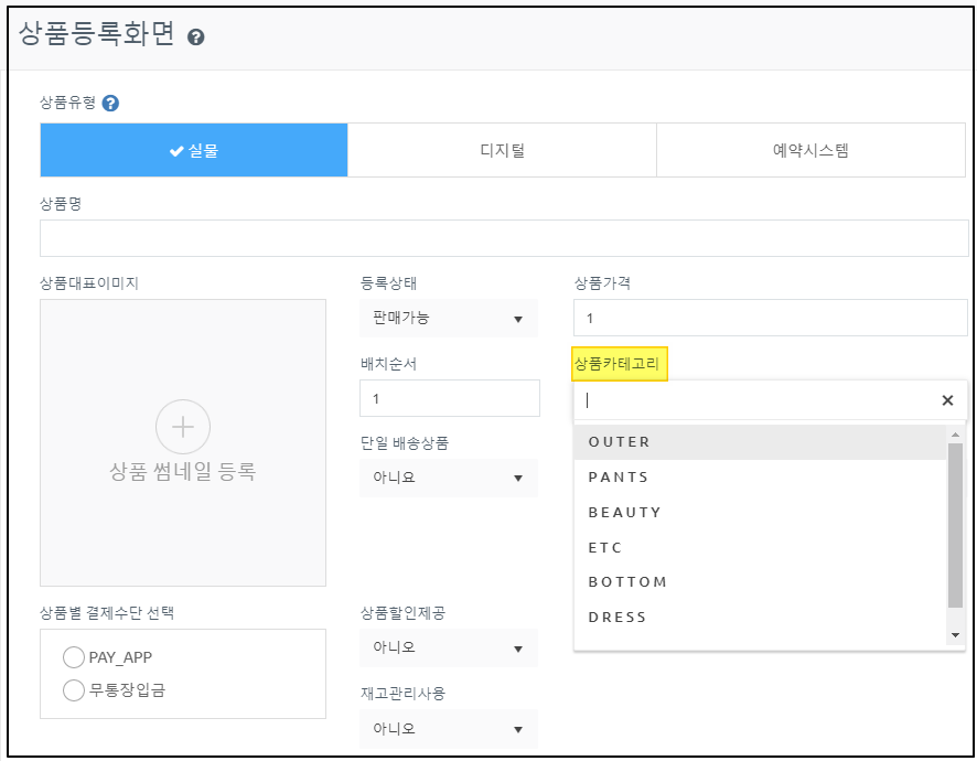 디지털제품, 예약시스템을 판매할 때에도 카테고리를 만든 후에 해당 카테고리에 맞는 상품을 등록을 해주셔야 합니다.