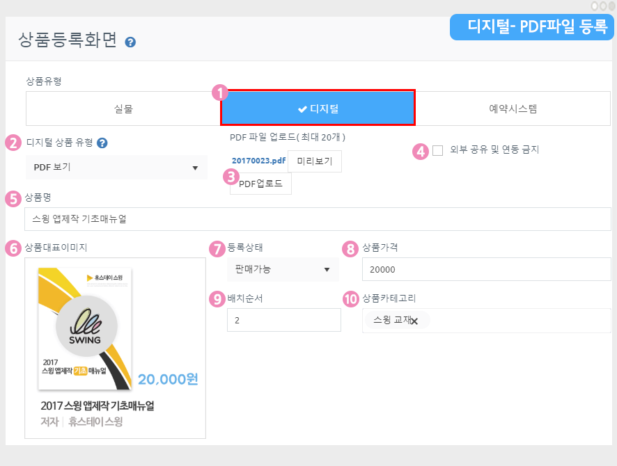 디지털제품: PDF파일 등록 및 앱 적용방법 안내