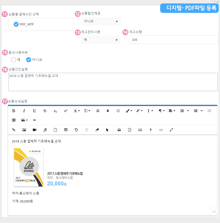 그 중 PDF파일 상품을 적용하는 방법을 알려드립니다.