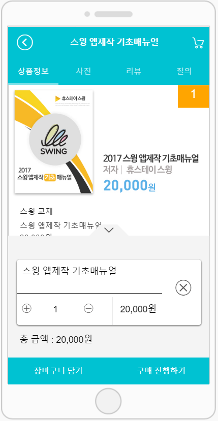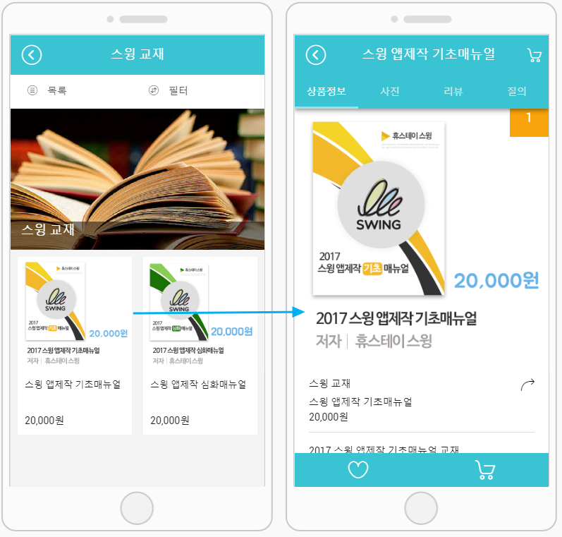 스윙 학원 샘플앱을 통해서 앱에 디지털제품-pdf파일이 어떻게 등록되었는지 확인해주세요.