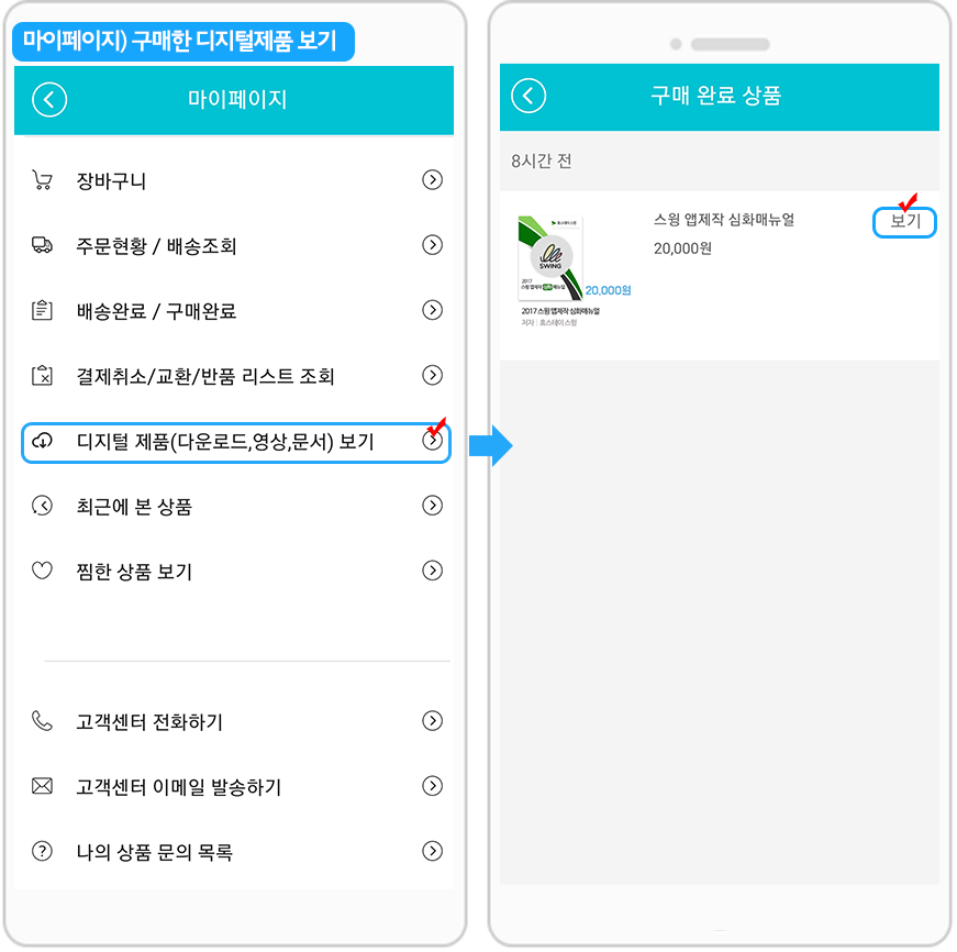 마이페이지의 – 디지털제품(다운로드, 영상, 문서)보기를 선택해주세요.