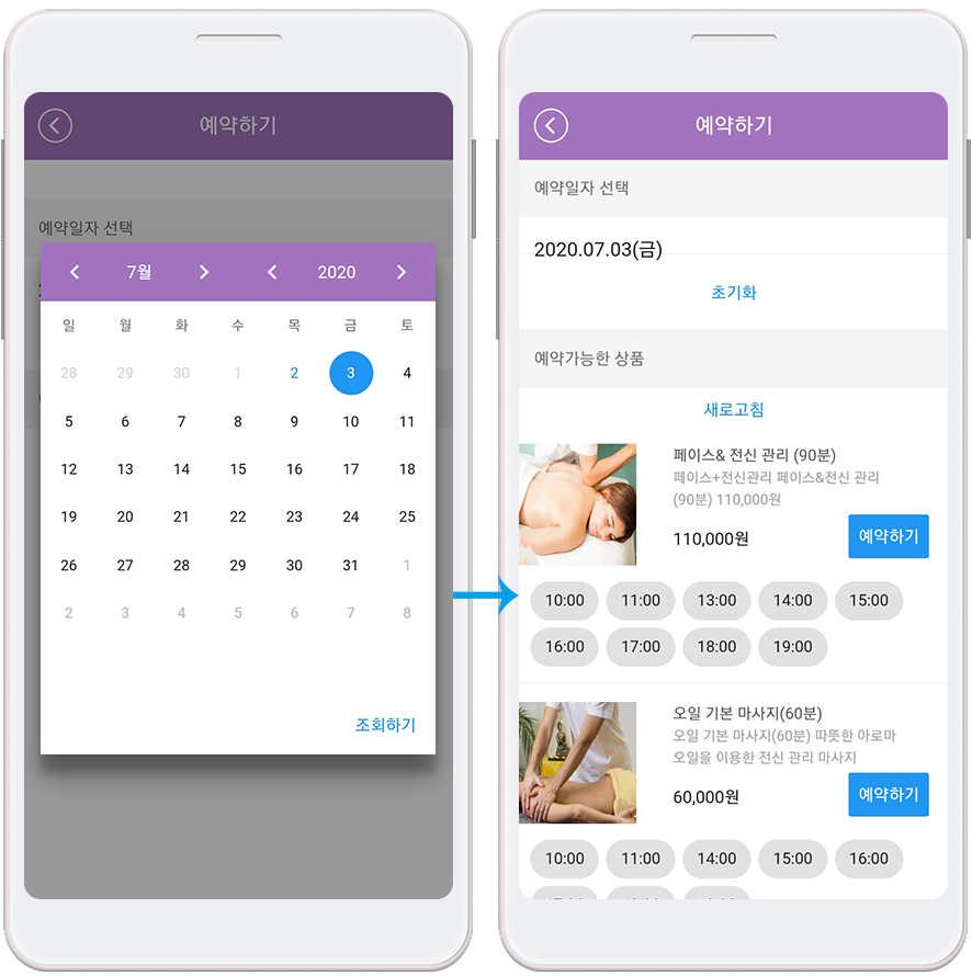 예약시스템은 날짜를 지정하여 예약하는 날짜예약상품과 날짜 및 시간을 지정하여 예약하는 시간+날짜 예약상품2가지로 제공이되요.
