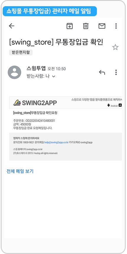 메일은 스윙투앱 계정 이메일로 들어와요.