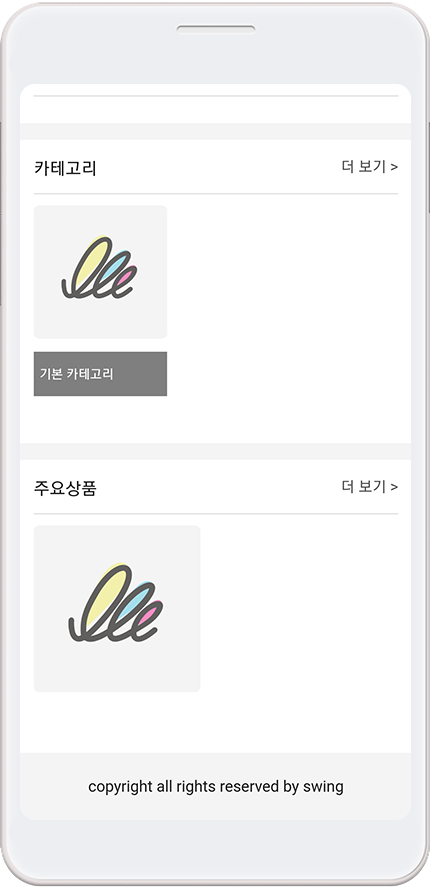 상점 메인 이미지 및 상품 섬네일 이미지 등은 모두 스윙샵 메뉴 이용하시면서 상점 등록 및 상품등록을 하시면 화면에 배치가 됩니다.