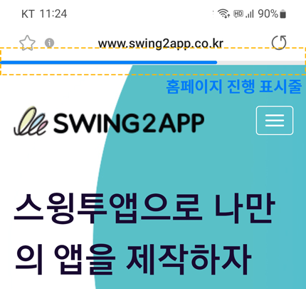 프로그레스바는 모바일 웹사이트를 연결한 웹앱-웹뷰, 푸시앱에서 볼 수 있습니다.